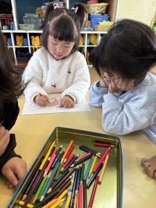 グループに分かれて年賀状用に協力しながら塗り絵をしました🖍️丁寧に色を塗る姿が見られました。
