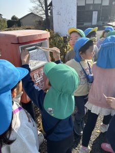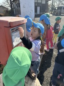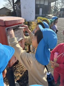 後日、交通指導の途中でポストを発見すると大喜び✨くまモンへ送る年賀状や保育園の他のクラスへの年賀状を、一人ひとり大切そうに投函しました📮